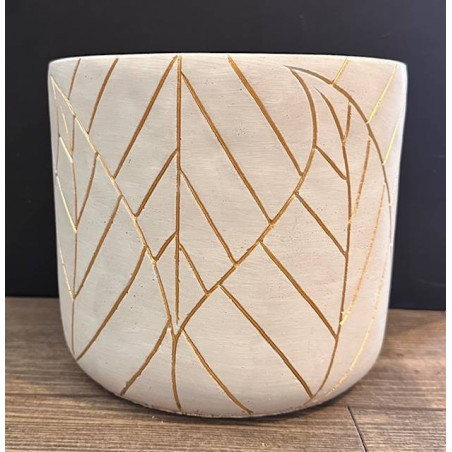 gros cache pot Diametre interieur de 19cm blanc avec dessin feuille doré. Idéal pour les moyennes et grosse plantes. Intérieur uniquement et résistant à l'eau.