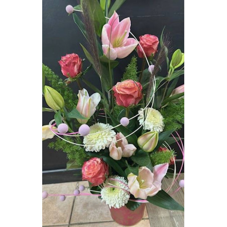 la photo est une suggestion de présentation, le modèle, les fleurs et le style peuvent différés selon la créativité et les fleurs disponibles.